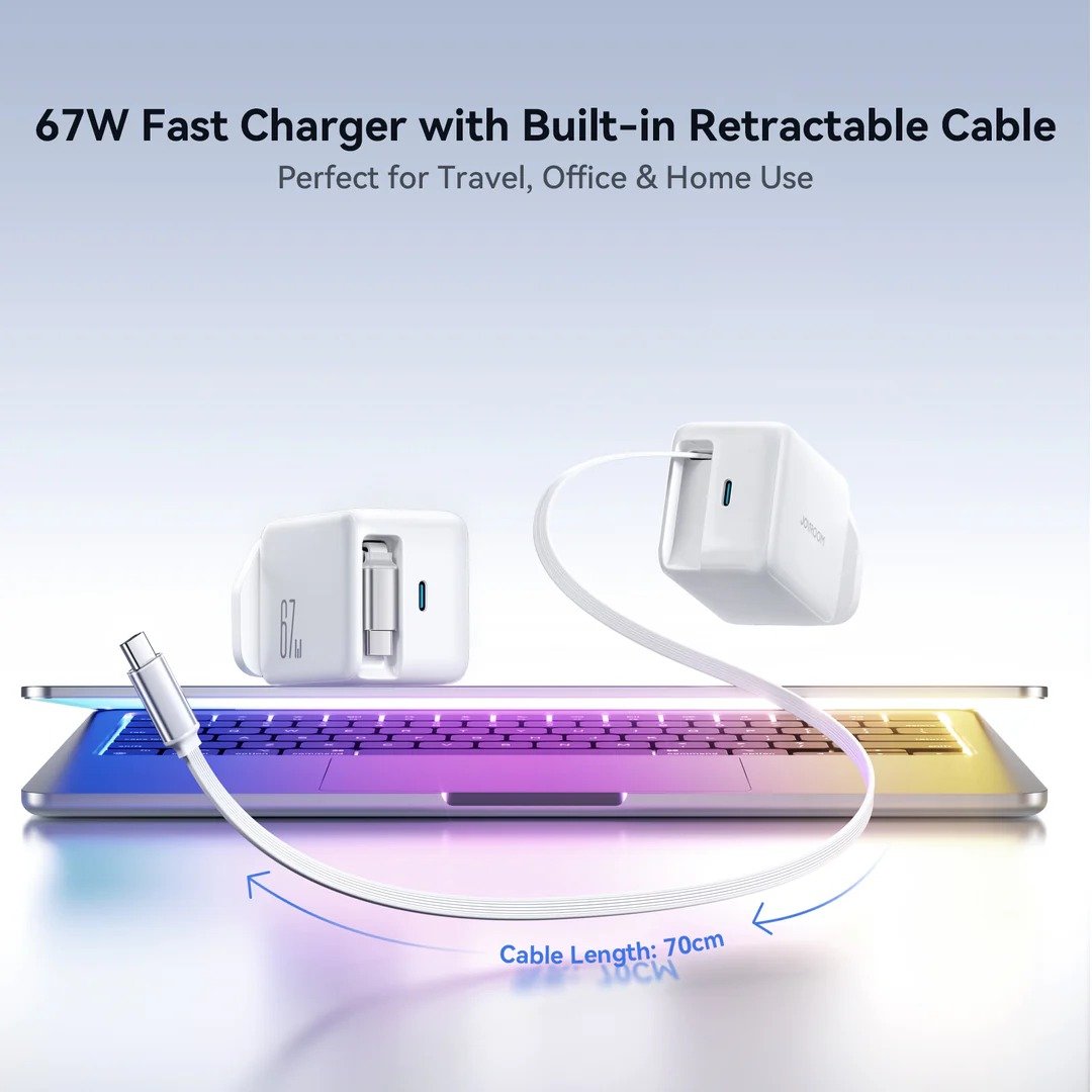 Joyroom JR‑TCL06 67W GaN Charger With Built‑in Retractable Cable