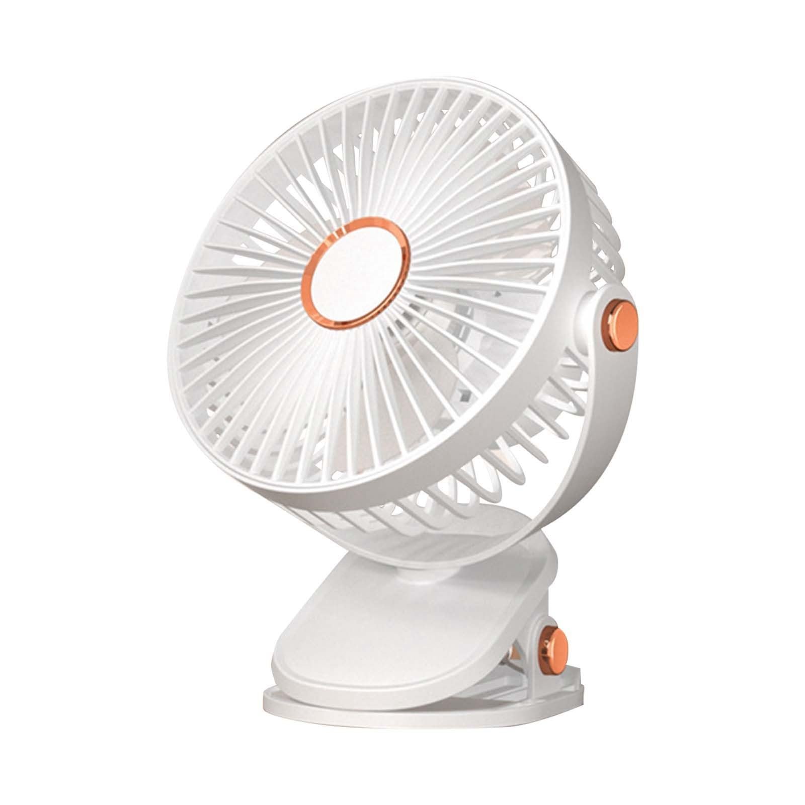 Compact rechargeable fan with clip, stand, and hanging options, perfect for home, office, or travel with built-in night light and USB-C charging.