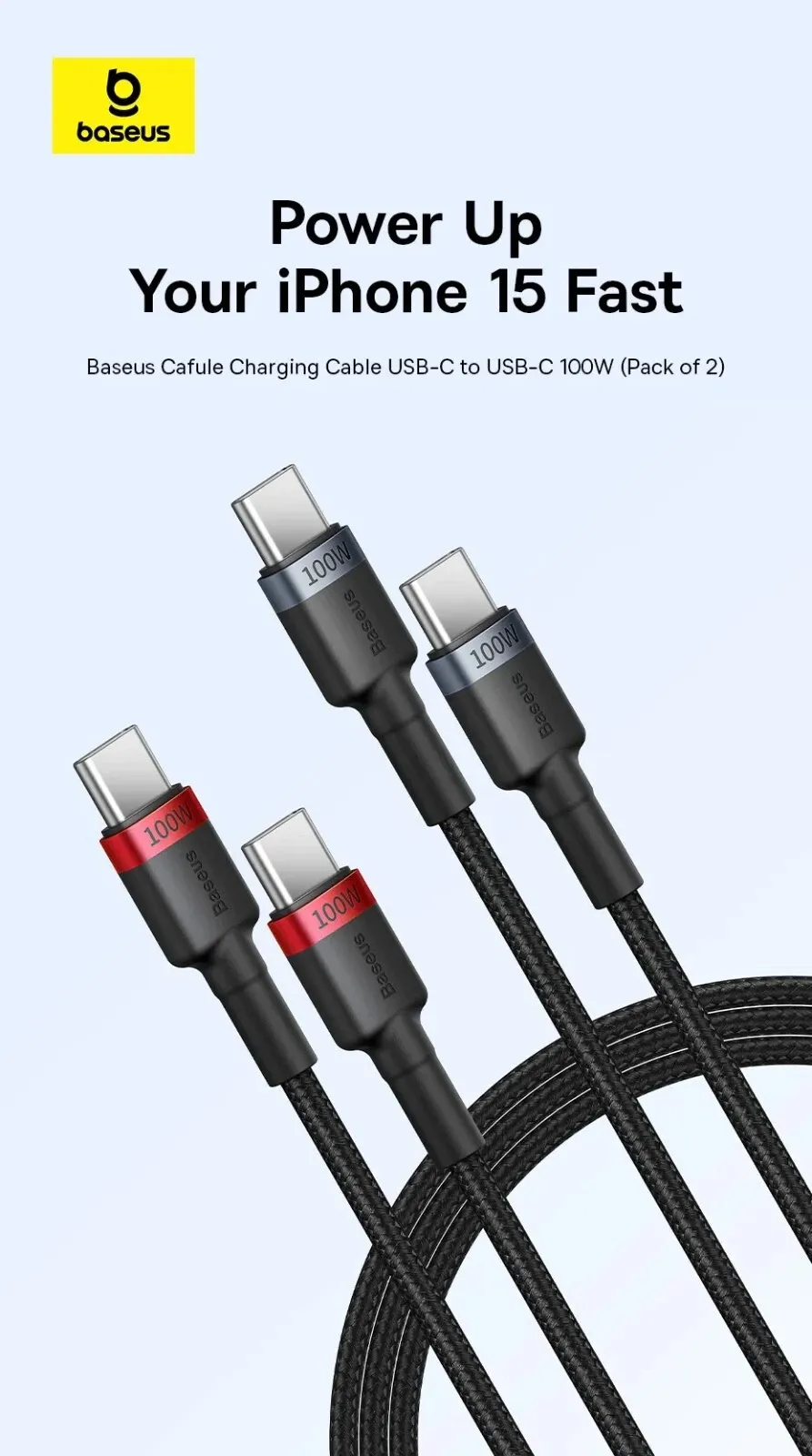 Baseus PD100W Fast Charging Type-C to Type-C Cable 3.3FT – 2PCS Bundle