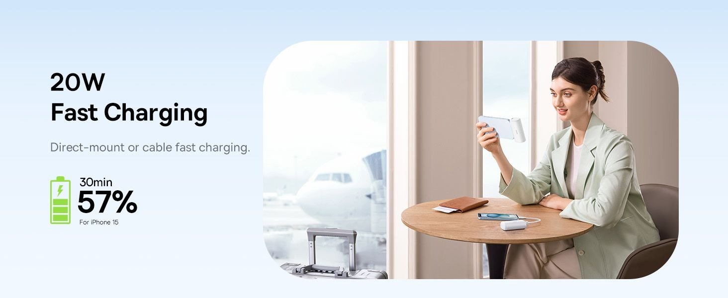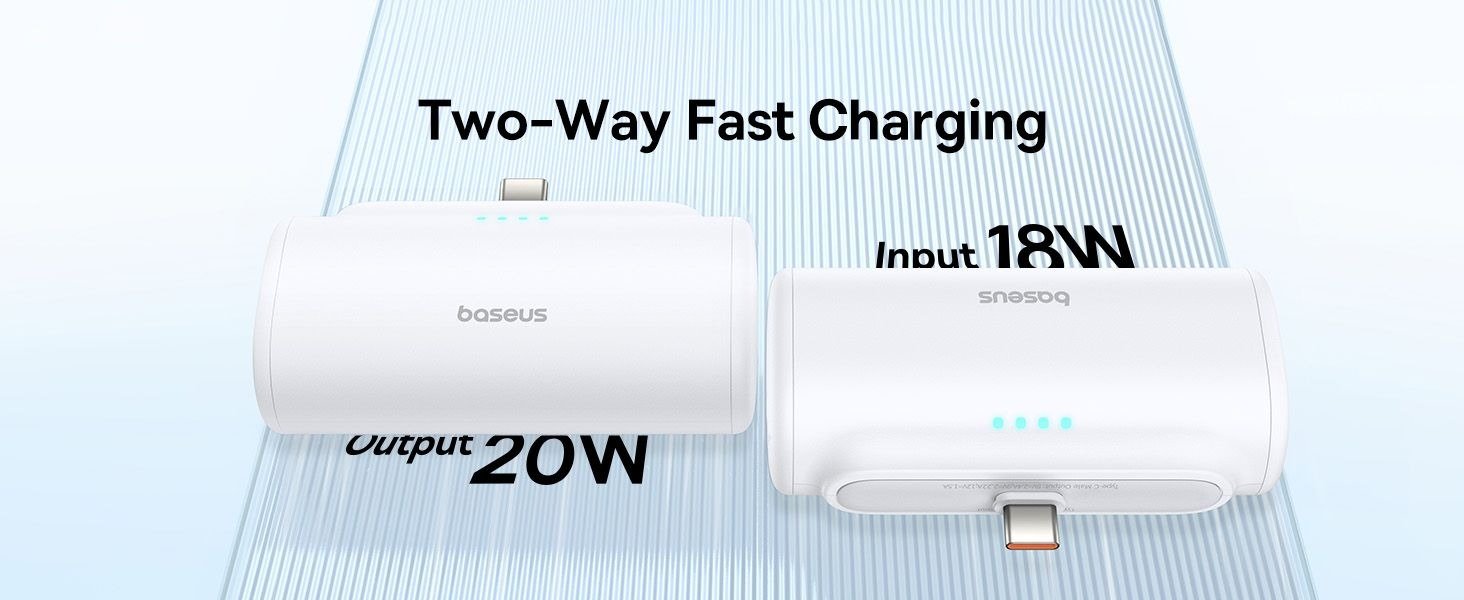 Baseus 5000 mAh powerbank with 20 W fast charging and built‑in Lightning connector offers compact, cable‑free charging for Apple devices on the go.