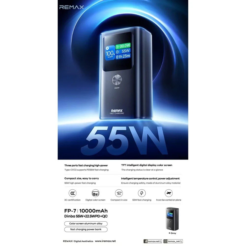 Remax FP‑7 10000 mAh 55W+22.5W Fast Charging Power Bank With Digital Display