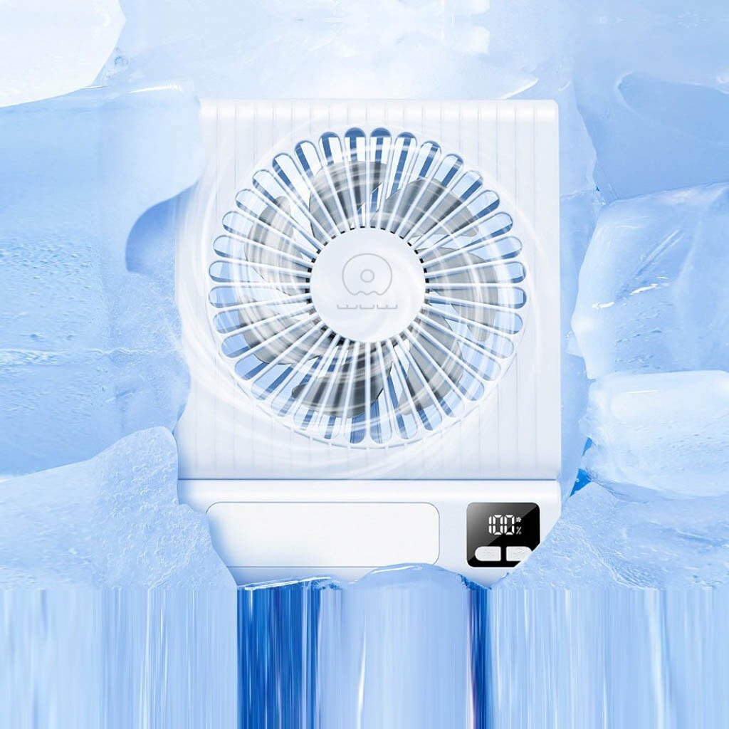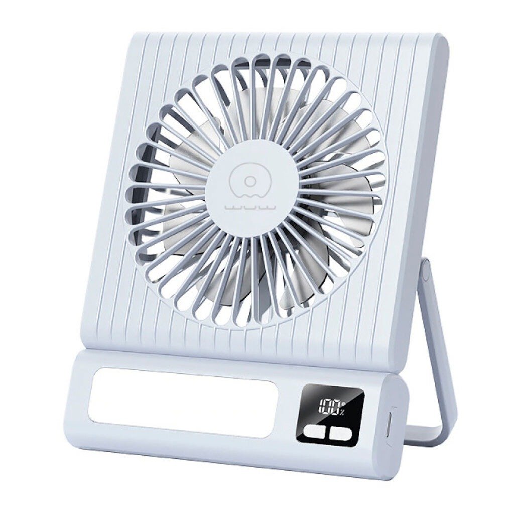 Dual-function desktop fan with built-in night light, offering quiet airflow and ambient lighting for workspaces or bedrooms.